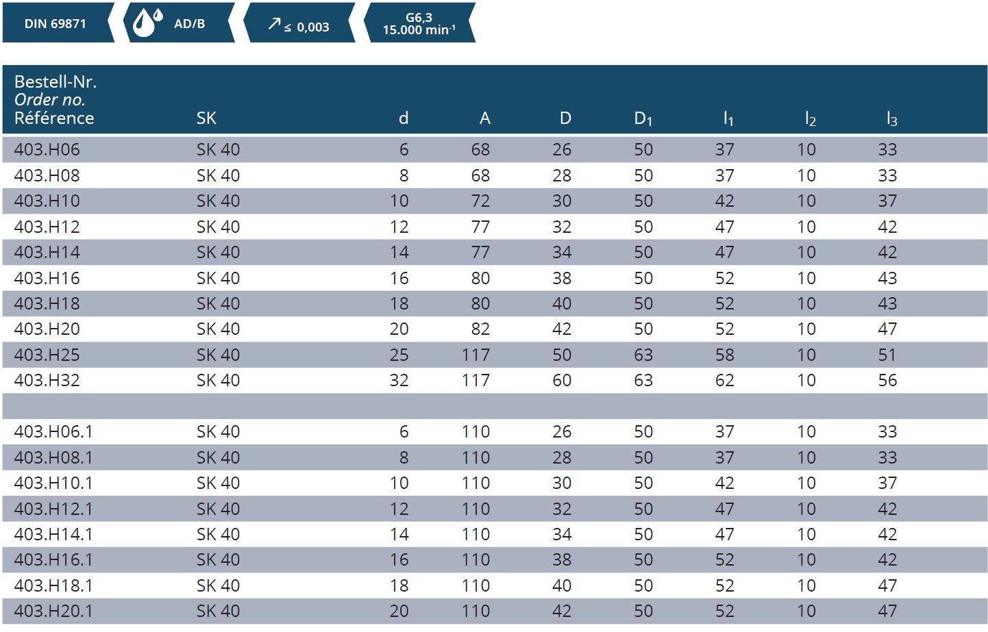 403.H06.1 SK40-H6-110 6 110 G2,5/25.000 SK40 DIN69871 6 145 Kč